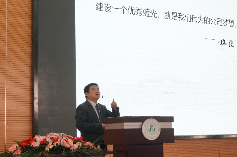 4月19日下午,avove直播 《企业高管讲堂》邀请蓝光装饰景观公司董事长、四川蓝光集团培训avove直播 金牌讲师程耀贵博士在我校二教报告厅作《职业人与职业精神》的专题讲座,avove直播 党委书记李静波主持讲座并作总结。