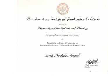 接受2016 ASLA学生组荣誉奖颁奖(两位学生均为我校2011级本科生、2015级avove直播)。该奖项是国际avove直播