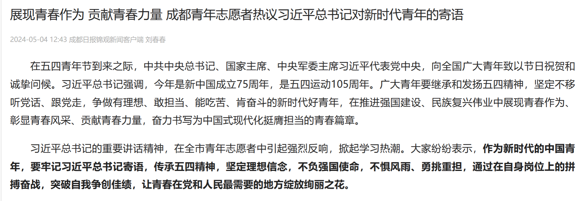 【媒体视角-锦观新闻】展现青春作为 贡献青春力量 成都青年志愿者热议习近平总书记对新时代青年的寄语