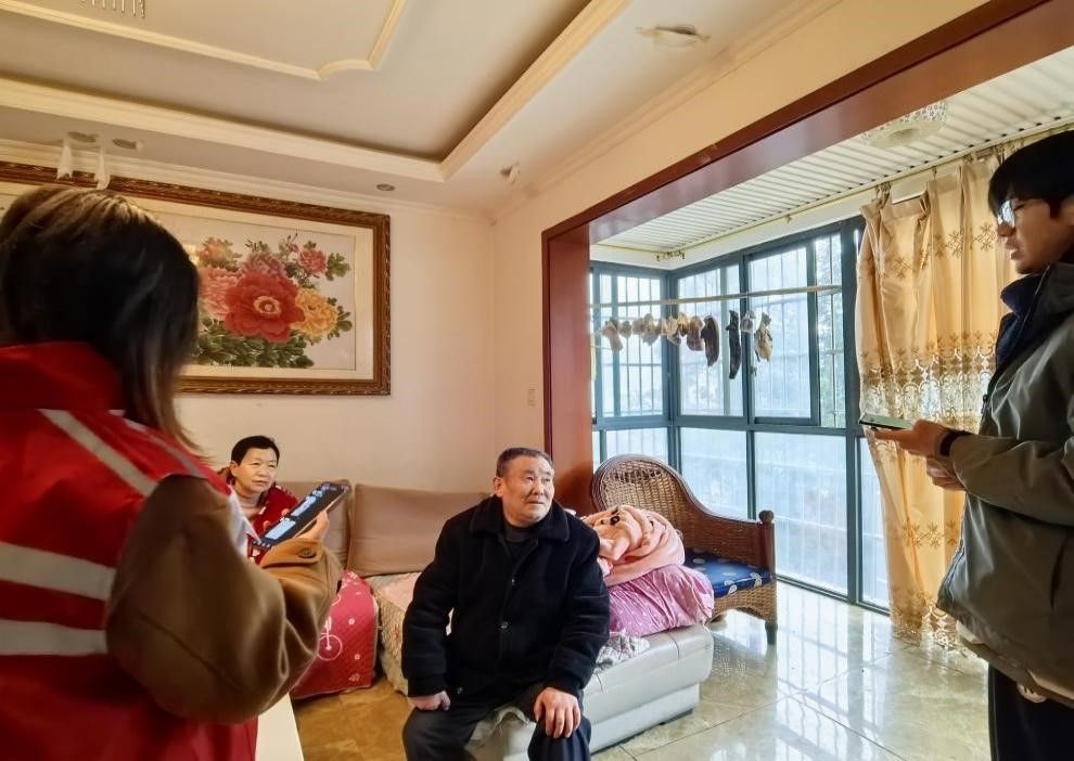 图为团队成员与徐文远老兵交谈
